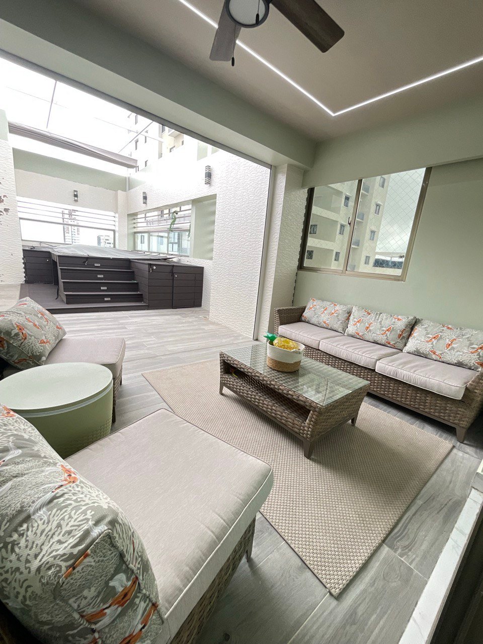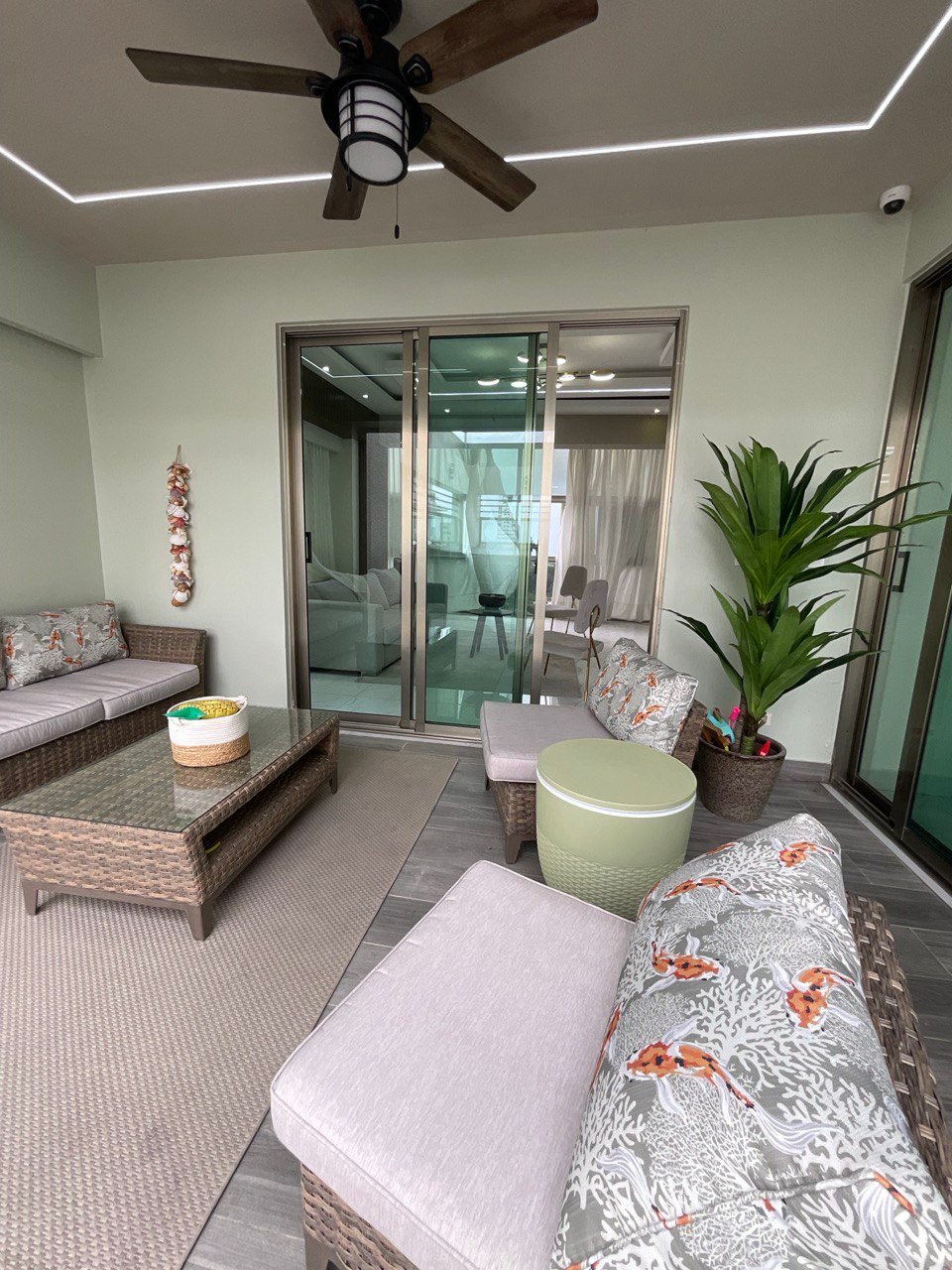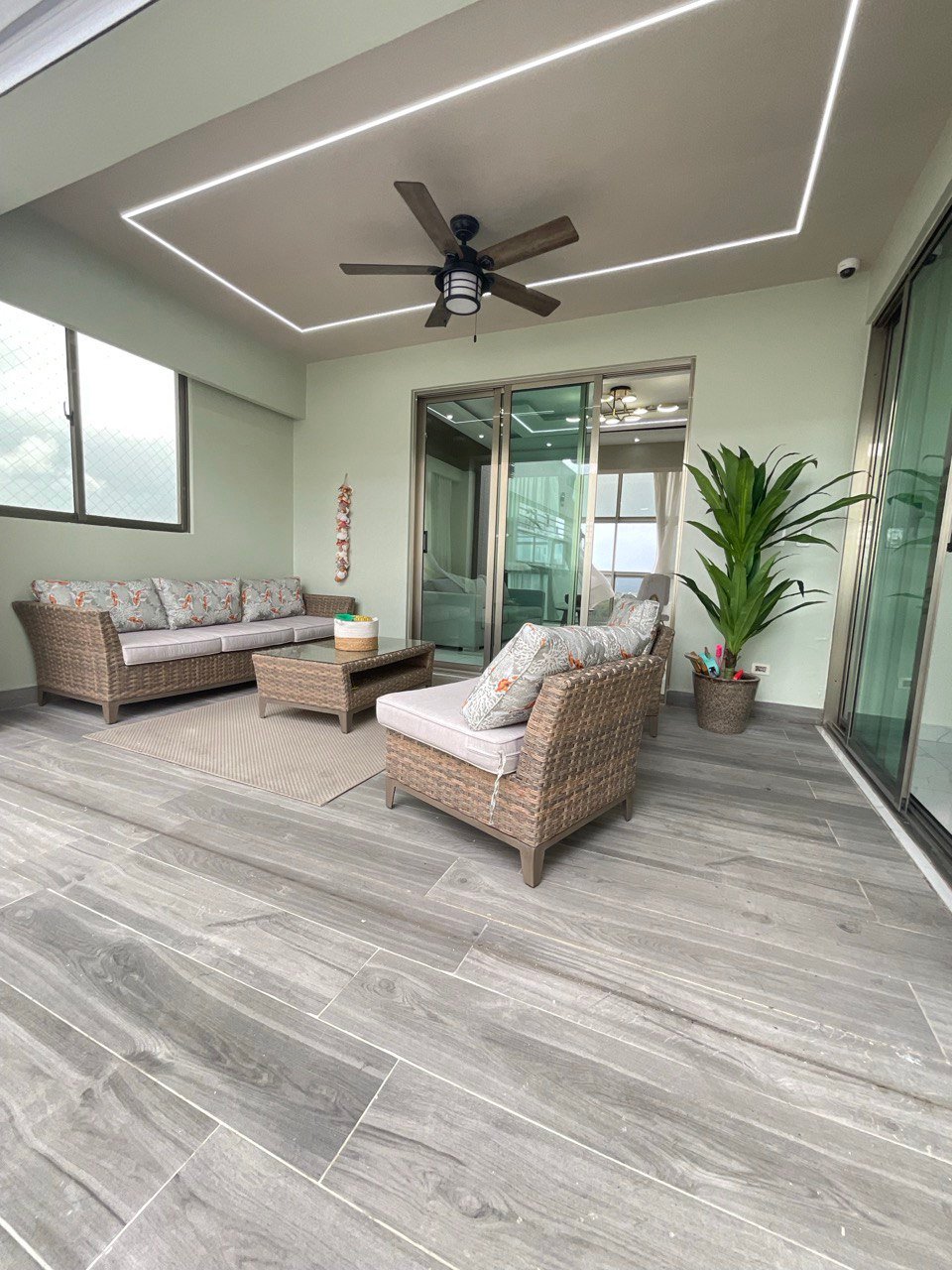Estar familiar techado con aire acondicionado.