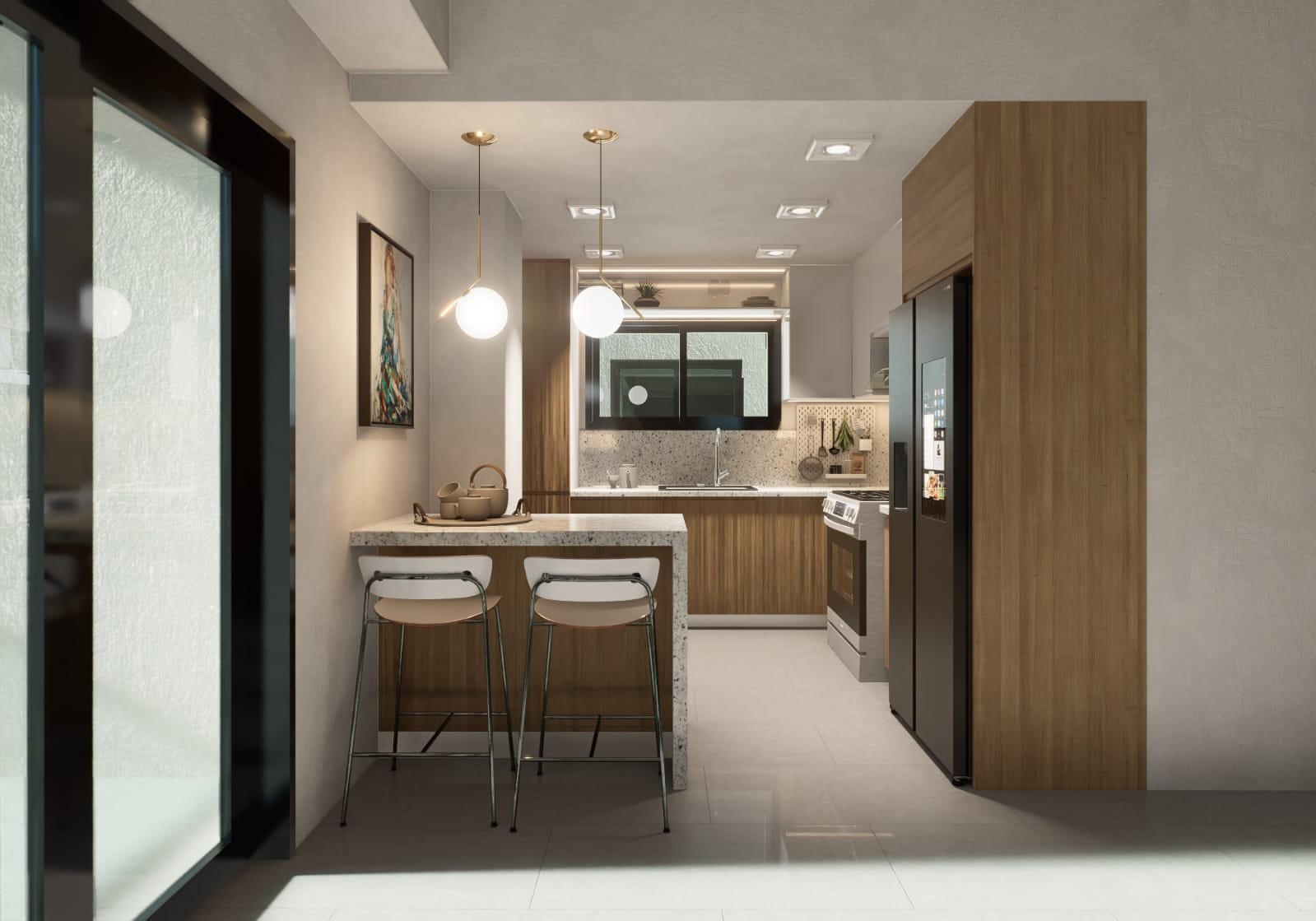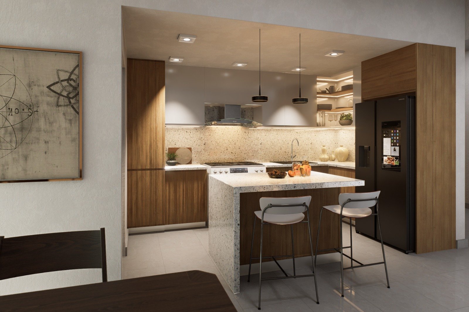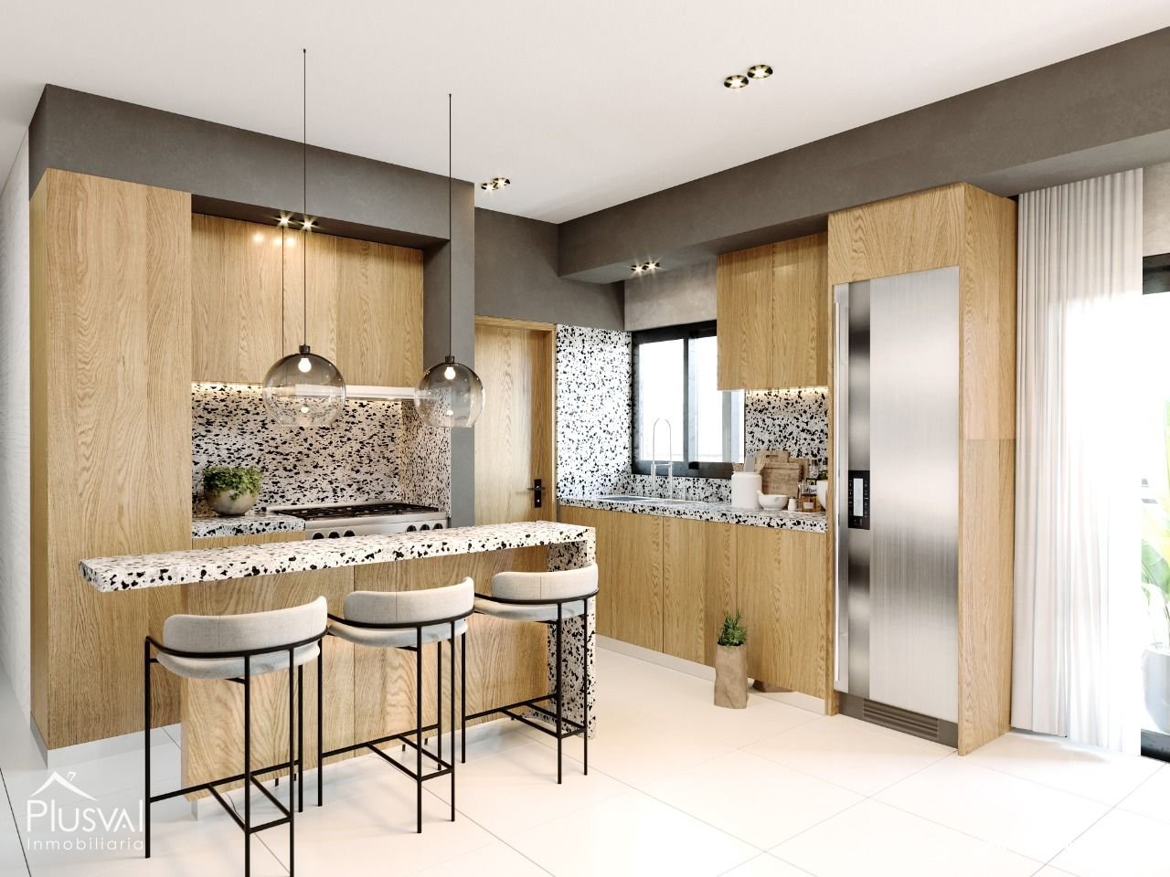 Amplia cocina, habitación principal espaciosa para cama King Size, y todos los apartamentos con balcones permitiendo que los apartamentos sean ventilados y con buena iluminación.